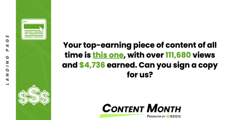 While we can’t show you exactly what page it was, this slide linked us to our top-earning content. It’s a banger, let me tell you that! This single page earned nearly 112,000 pageviews, as well as netting a chunky $4,700+ (as of writing) in ad revenues. If you’re curious to beat our figures, Ezoic’s ad revenue guarantee promises to earn you 25% more in ad revenues in 30 days. Or, they’ll pay the difference!